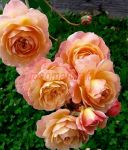 Лососево-розовые цветки старинной формы, с плотными гофрированными лепестками держатся на кусте очень долго,
