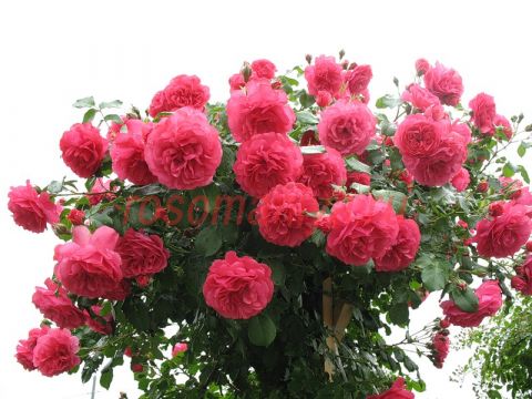 Когда эта роза цветет ранним летом, она образует яркий цветовой акцент благодаря огромному количеству густо-розовых цветов, которые появляются по одному или в крупных кистях. Более 100 лепестков плотно уложены друг на друга в крупных цветках, которые широко раскрываются в почти плоские розетки, и с возрастом приобретают серебристо-розовые тона. Они очень устойчивы к дождям и ветру. Листва обильная, крупная, блестящая, здоровая. Сорт можно выращивать как клаймбер, или как шраб.