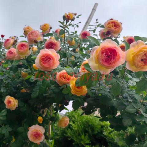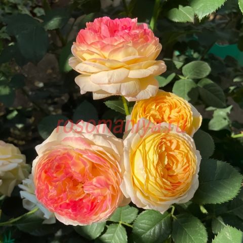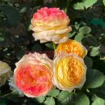 Цветки светло-желтые с вербеново-зелеными оттенками, которые с возрастом розовеют, напоминают бурбонские розы. Аромат нежный. Цветки крупные, шаровидные, появляются в кистях. Цветение обильное.
