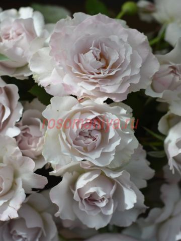 Роза молочно-белого цвета с легким серебристо-лавандовым оттенком. Цветок махровый с волнистым краем и умеренным ароматом. Листва абсолютно устойчива к дождю и болезням.