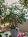 Роза молочно-белого цвета с легким серебристо-лавандовым оттенком. Цветок махровый с волнистым краем и умеренным ароматом. Листва абсолютно устойчива к дождю и болезням.