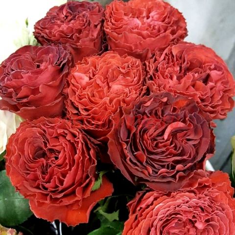 Эта роза отличается насыщенным цветом и яркими, кружевными лепестками.