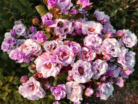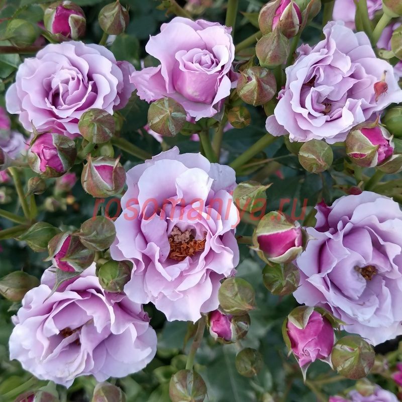 Огромные по количеству, соцветия-букеты розово-лилового цвета, с волнообразным лепестком. Цвет их варьируется в зависимости от освещённости - от лилового до светло-розового. Куст сильный. Листья темно-зеленые, блестящие, яйцевидные, с мелко-зубчатыми краями. Цветение обильное, длительное - с начала и до конца лета. Практически без шипов и запаха.