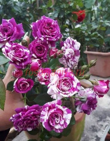 Scented Jewel — очаровательная флорибунда с темно-фиолетовыми лепестками, испещренными белоснежными вкраплениями, которые создают эффект мраморной поверхности. Сильный аромат добавляет роскошного очарования и выделяет ее на фоне других растений в саду.