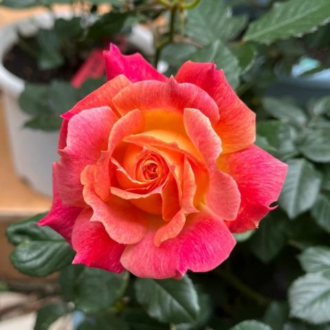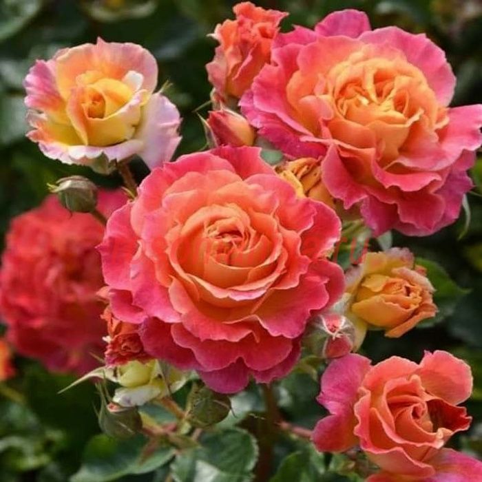 Темные бутоны раскрываются, открывая оранжевый, иногда желтый центр цветка. Цветы меняют цвет в зависимости от погоды – от желтого до оранжевого, розового и розово-красного. На одном кусте цветы могут иметь разные оттенки теплых тонов.