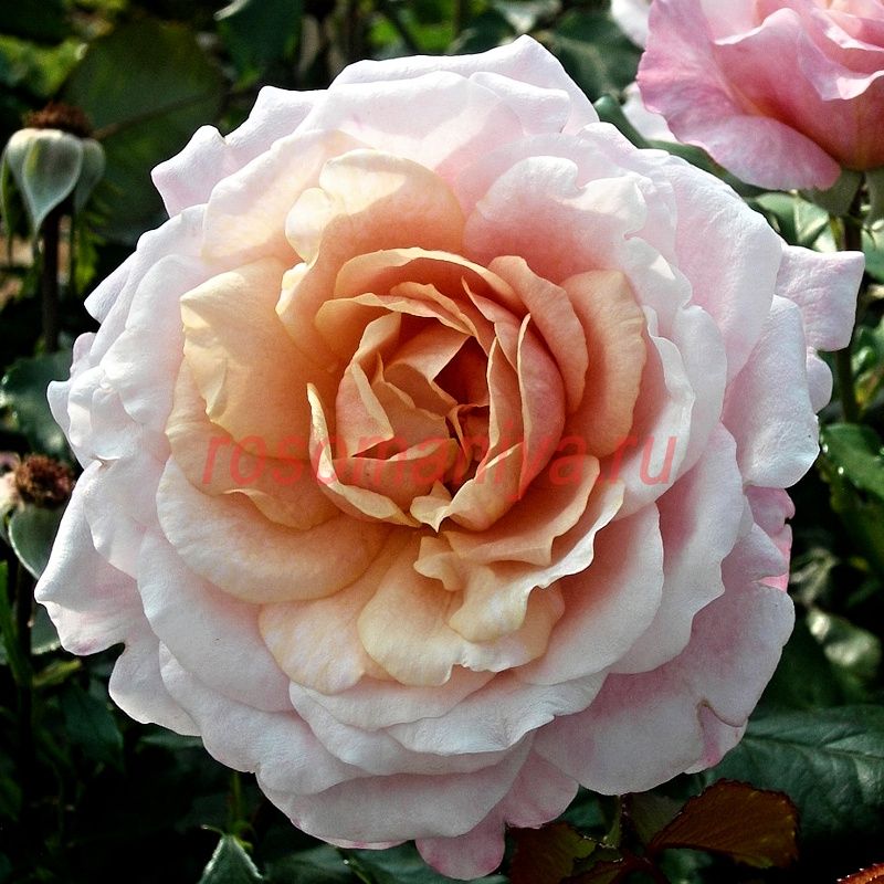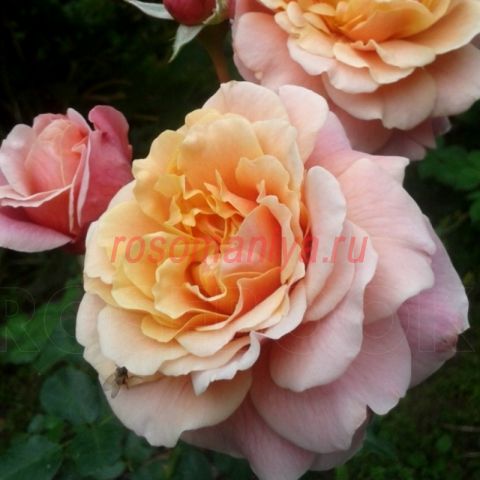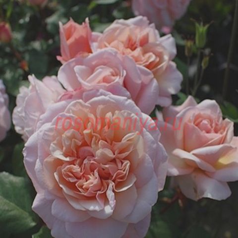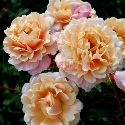 Абрикосово-розовые душистые цветы появляются в небольших соцветиях в течение всего сезона. Листва темно-зеленая, блестящая. Кусты сильнорослые, выносливые.