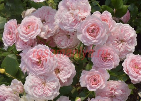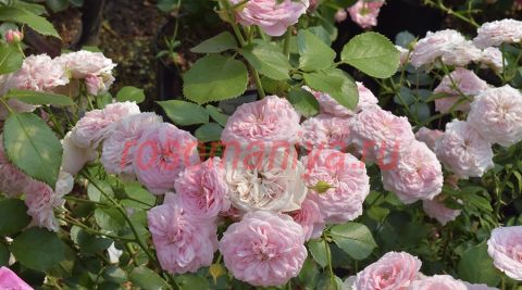 Цветение очень обильное, повторное, практически непрерывное, продолжительное до заморозков, цветки собраны в крупные соцветия. Лист темно-зеленый, крупный, глянцевый.