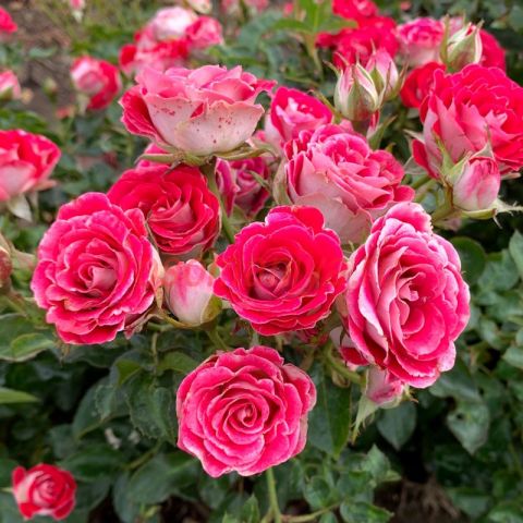Цветки махровые, красные с кремово-белым реверсом. Аромат лёгкий. Компактный куст, быстрый рост, обильное цветение весь сезон, листва темно-зелёная глянцевая, прекрасная устойчивость к болезням.