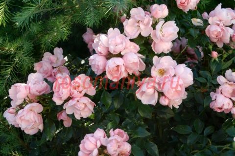 Цветки светло-розовые, полумахровые, с оранжевыми тычинками, в метельчатых соцветиях. Длинные заостренные бутоны. Обильное повторное цветение. Куст плотный, раскидистый, прямостоячий. Мелкая, блестящая, тёмно-зелёная, кожистая листва.