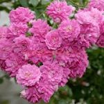 Цветки красивого темно-розового цвета с более бледной оборотной стороной лепестков и белым пятнышком в центре, выгорают с возрастом, особенно там, где лепестки находятся на ярком солнце. Листва мелкая, блестящая, устойчивая к заболеваниям. Побеги бледно-зеленого цвета, гибкие. Начинает цвести сравнительно поздно, но затем волны цветения сменяют одна другую достаточно быстро до самых морозов, и куст редко стоит без цветов.