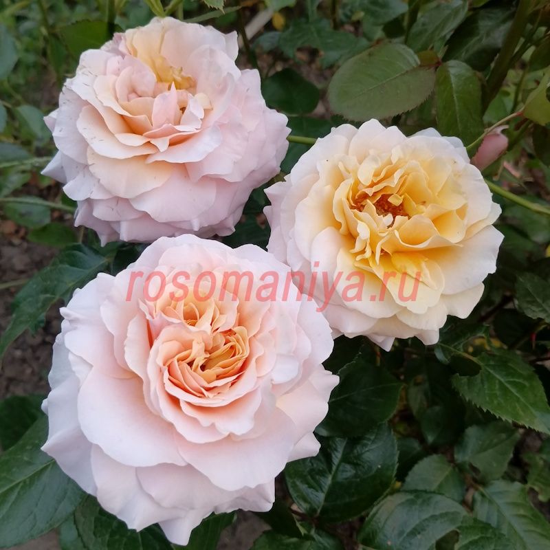 Густомахровые цветки в старинном стиле, часто квартированные. Янтарно-розовый цвет перекрывается нежно-розовым, у основания лепестков оттенок медовый.