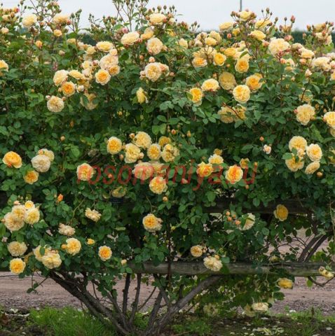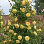Желтая роза изысканной красоты; цветки изящной чашевидной формы. Центральные лепестки формируют чашу глубокого, насыщенного желтого цвета, а внешние отгибаются наружу и выцветают до очень бледно-желтого.