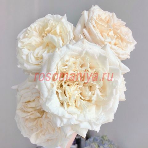Чайно-гибридная роза с бело-кремовыми цветками в старинном стиле, крупными, густомахровыми, не выгорающими от времени и солнца. Цветение повторное, обильное.