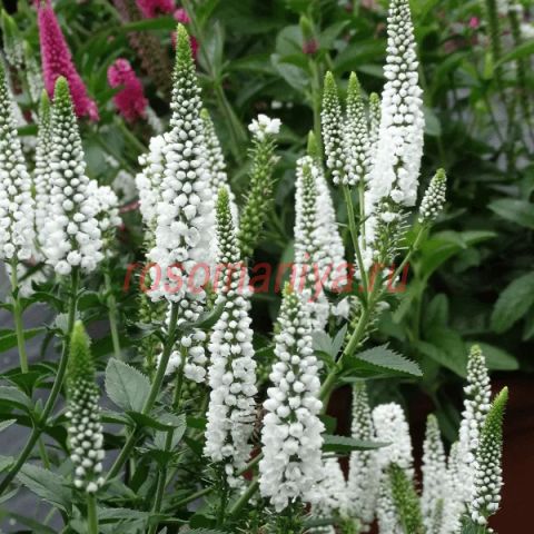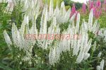 Вероника "First Lady" - декоративный красивоцветущий многолетник. Лист продолговатый, тёмно-зелёного цвета. Соцветие плотное, кистевидное, белого цвета. Развивается быстро, не разваливается.